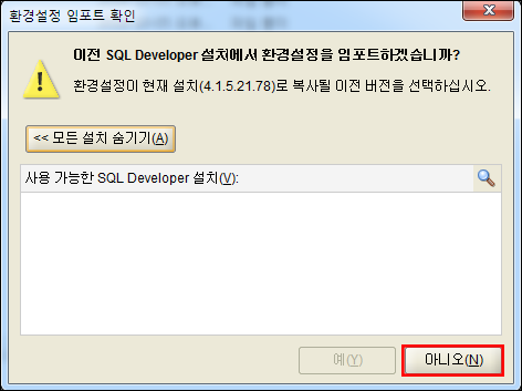 설치 중 위와 같은 창이 나타난다. 아니오를 클릭하자.