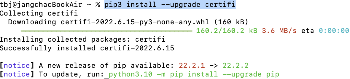 명령어 : pip3 install --upgrade certifi