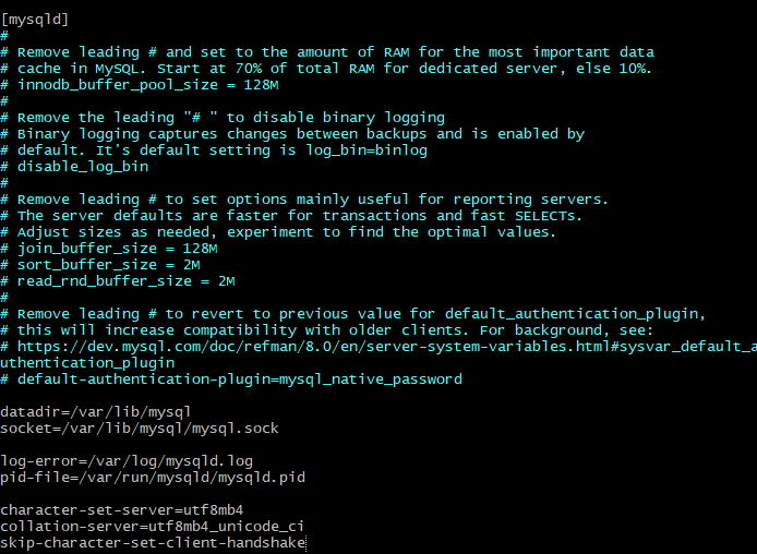 - Ubuntu 계열: /etc/mysql/mysql.conf.d/mysqld.cnf